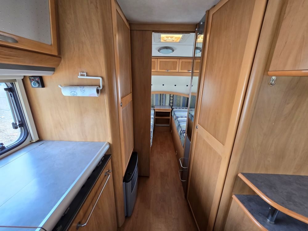 C.0157, Rok výroby 01.12.2004, Celková hmotnost 1.500 kg, Provozní hmotnost 1.125 kg, Doložnost 375 kg, Celková délka 7.747 mm, Délka karavanu bez oje 6.120 mm, Délka oje 1.350 mm, Celková šíře 2.330 mm, Celková výška 2.800 mm, Maximální rychlost dle TP 100 km/hod, Počet osob - spaní / lůžka 4, Předstan + konstrukce původní stav, Plynový sporák se 3 plotýnkami, Dřez s pákovou sklopnou / pevnou baterií, Lednice malá 12V/230V/plyn, Elektrické topení ULTRAHEAT, Rozvod topení po karavanu – rozfuk, Automatický piezzo zapalovač na plynové topení, elektrický bojler s napojením na rozfuk, Kazetové WC, Zásobník na splachovací vodu do WC z centrální nádrže, Elektrické splachování WC, Umyvadlo mimo koupelnu / sólo koutek, velká nádrž na vodu 40l, Nádrž na odpadní vodu - integrovaná / přenosná, TV jen příprava, Thermo roletky, Moskytiéry, Výsuvná anténa manuální s rozvodem včetně přípojky, Nájezdová brzda se stabilizátorem, Mover (pojezd) + DO ENDURO, Trakční baterie není nutno doplnit, box na baterii a nabíječka 230V, Plechové disky / počet děr - 5x, Pneumatiky / rozměr 205/65/R 15C 102/100T, Držák na plynovou lahev / počet uchycení - 2 lahve, Klička na stabilizační nohy, Přípojný kabel 230V v délce 1,5m, Přípojný kabel k vozidlu 13pin, Revize plynu, Karavan je přihlášen v ČR, má RZ - SPZ a STK, Celková kontrola karavanu servisním technikem, Provedeno čištění OZÓNU, Doplňující výbava - karavan částečně vybaven, Možnost namontování jakéhokoliv příslušenství dle vlastního výběru, Cena montáže 950,-Kč/hod, Informace ke karavanu - karavan je částečně vybaven - komisní prodej - pěkný a zachovalý stav - neváhejte a přijeďte co nejdříve, než vám tento pěkný kousek uteče! Vybavení - předstan včetně konstrukce + přístřešek - dveřní závěs proti hmyzu - mover s dálkovým ovládáním - plynová lahev ocelová 10 kg - koberec do předstanu - židle a stoleček – kanystry - přípojné kabely a další drobné vybavení Doplňující informace: Neváhejte nás kontaktovat nebo se osobně přijeďte podívat do naší provozovny v Radešově, okr. Náchod, kde vám vše rádi ukážeme a ochotně poradíme. Máme vlastní e-shop a servis, takže si můžete vybrat zboží v našem E-SHOPU a my vám ho následně namontujeme. Před příjezdem je nutné nás telefonicky kontaktovat. Poradíme, dodáme a namontujeme.
